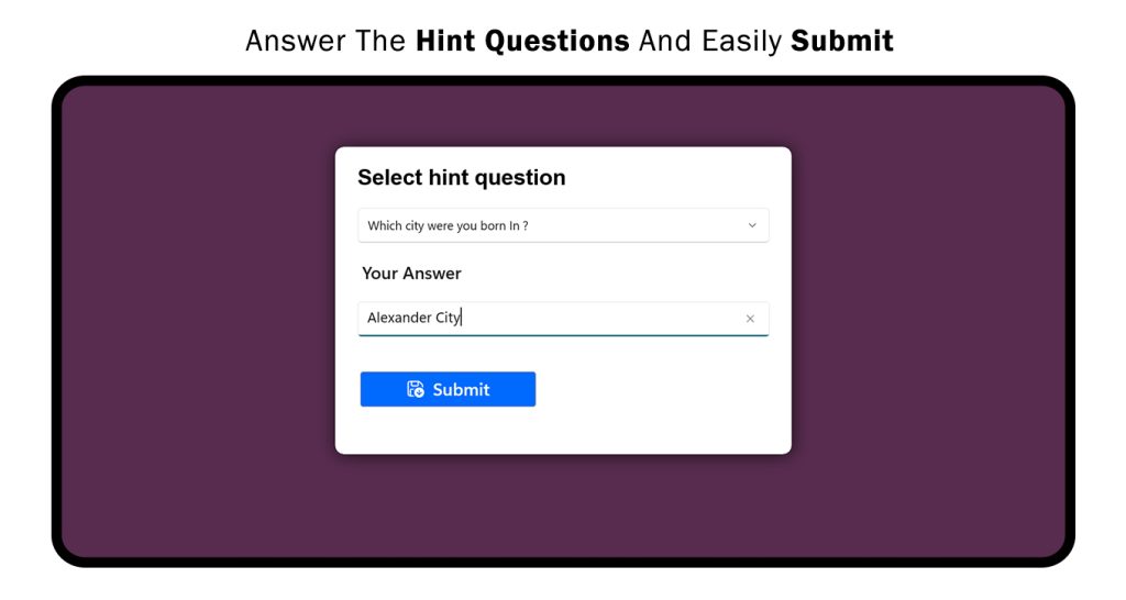 - Enter a unique and secure answer to the security question. This answer will be used to verify your identity during the password reset process.